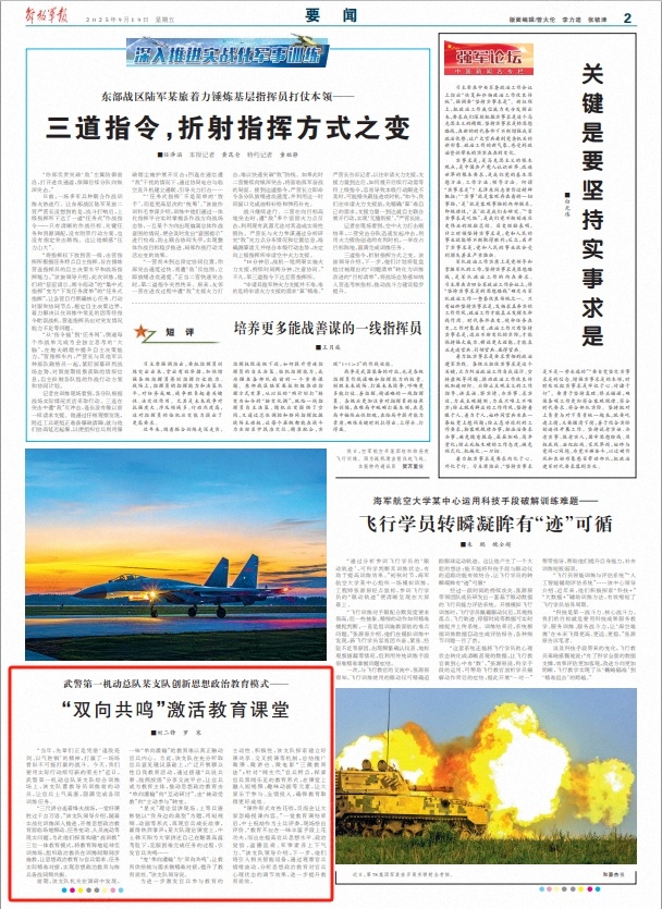 前期,該支隊機關(guān)在調(diào)研中發(fā)現(xiàn),一味“單向灌輸”的教育難以真正觸動官兵內(nèi)心。為此,該支隊在充分聽取官兵意見建議基礎(chǔ)上,廣泛開展群眾性自我教育活動,通過搭建“兵說兵事、戰(zhàn)例戰(zhàn)悟”分享交流平臺,讓官兵成為教育主體,推動思想政治教育由“單向灌輸”向“互動研討”、由“被動受教”向“主動參與”轉(zhuǎn)變。