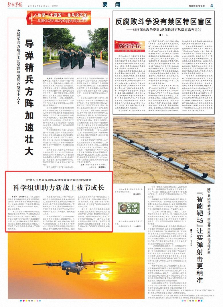 該基地發(fā)揮專業(yè)人才集中的優(yōu)勢,遴選數(shù)十名優(yōu)秀教練員組成專業(yè)教學(xué)團隊,鼓勵新兵班長在互學(xué)互鑒中增強帶教能力,提升了新兵訓(xùn)練整體質(zhì)量?!皫Ы绦卤倪^程中,我從其他教練員身上學(xué)到不少先進理念和科學(xué)方法,實現(xiàn)了與新兵一起成長、共同進步?!毙卤嚅L王鋒說。