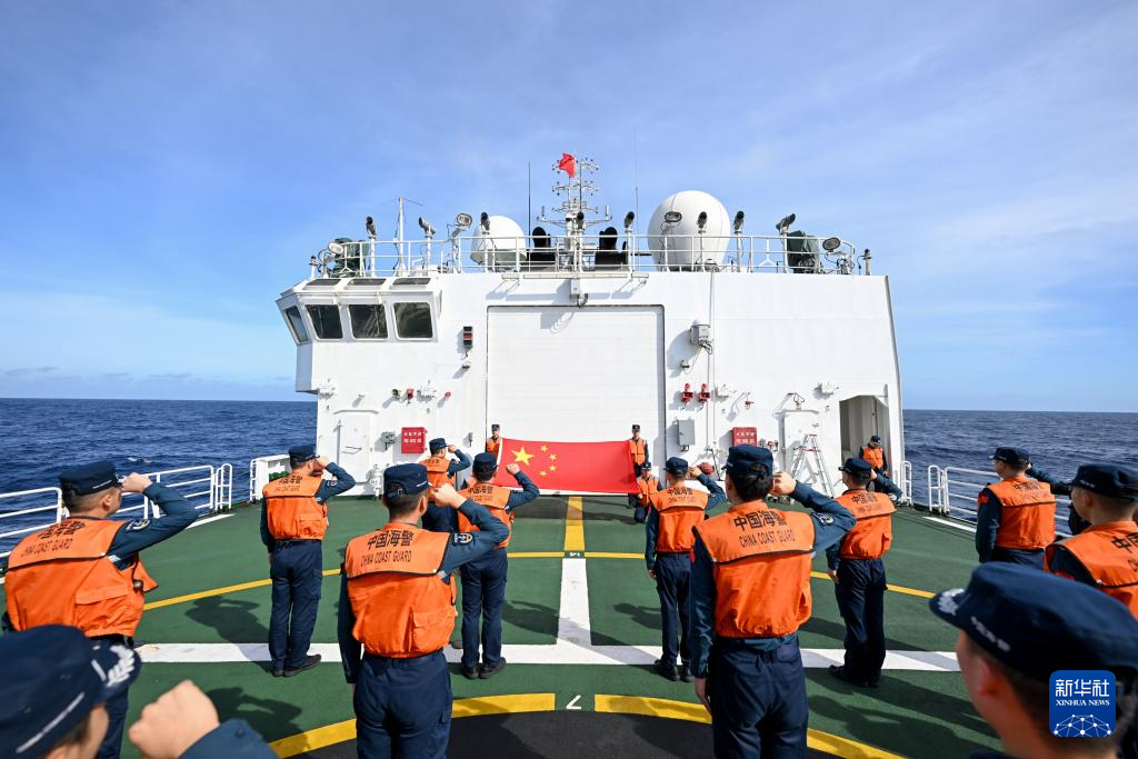近日,在黃巖島附近海域執(zhí)行常態(tài)化巡航任務(wù)的中國海警黃巖艦執(zhí)法員舉行紀念儀式,為南京大屠殺死難者脫帽默哀。默哀畢,執(zhí)法員們重溫誓詞,堅決維護我國海洋權(quán)益、捍衛(wèi)領(lǐng)土主權(quán)完整。