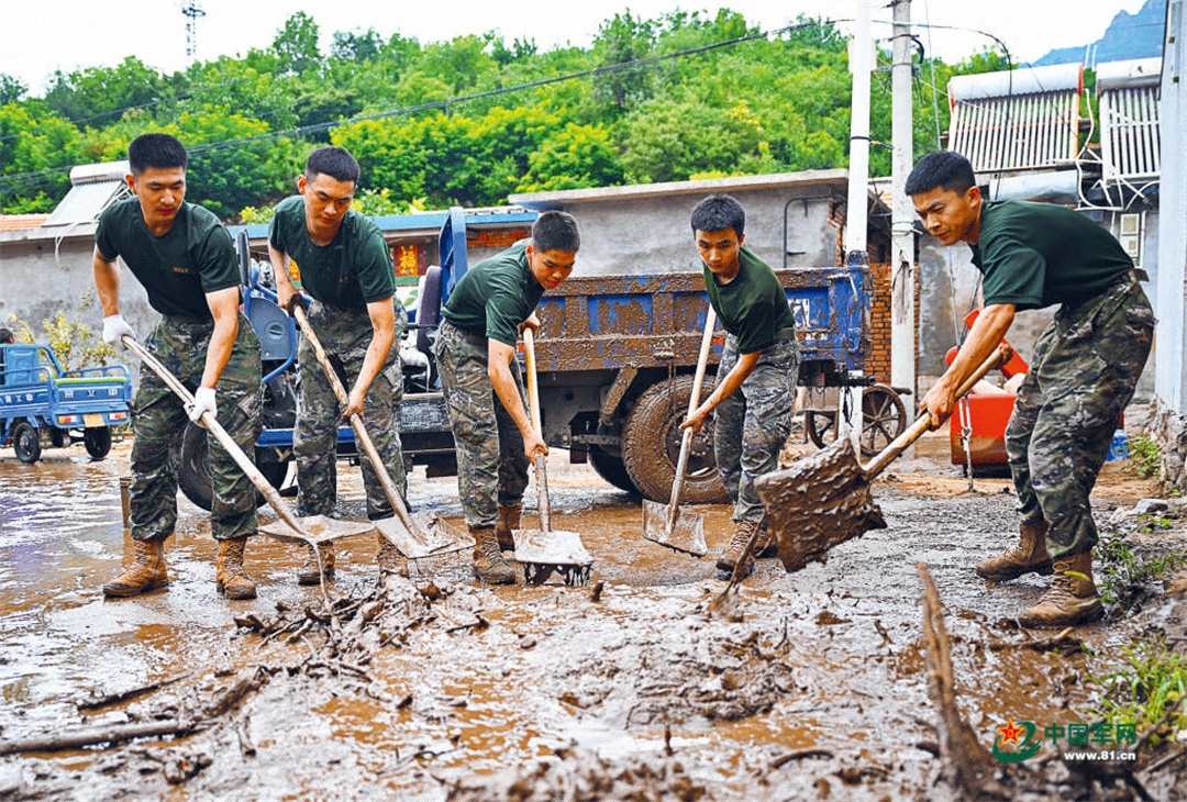 7月31日,武警北京總隊(duì)某支隊(duì)官兵在北京市平谷區(qū)鎮(zhèn)羅營鎮(zhèn)關(guān)上村清淤。中國國防報記者 穆瑞林 攝