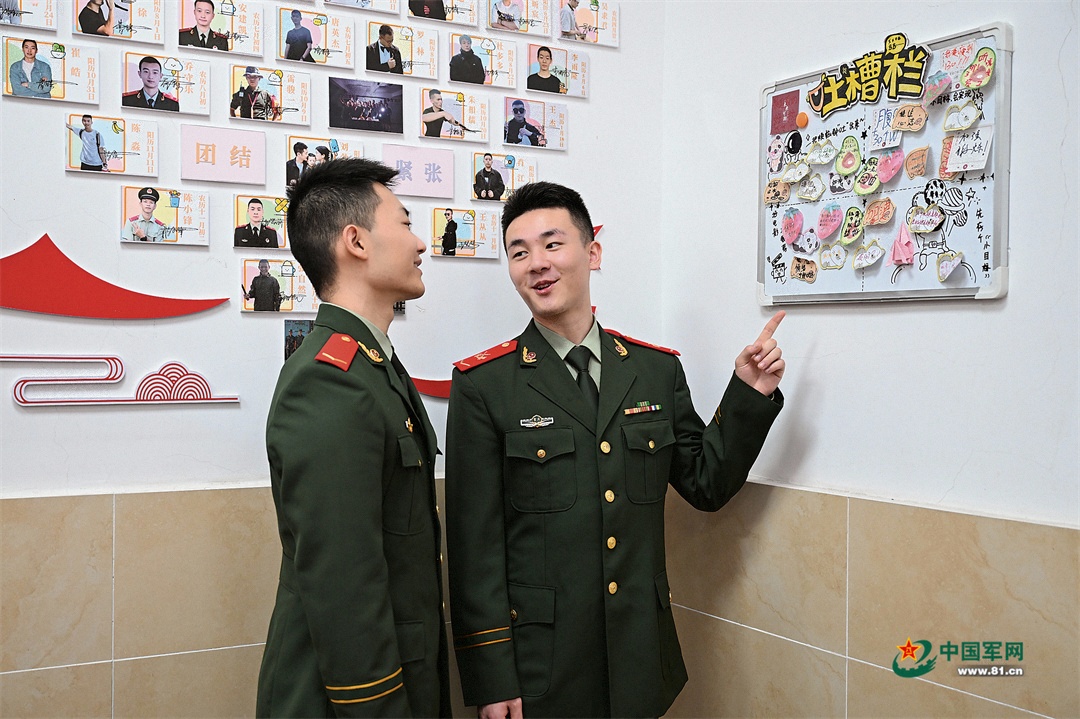 該中隊(duì)?wèi)?zhàn)士在“吐槽欄”前交流。張永清 攝