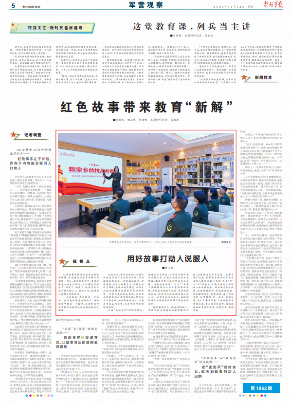 一個好故事,有時勝過一打道理。在信息紛繁復雜的今天,講好教育中的每一個故事,是新時代部隊思想政治教育必須回答好的時代課題。