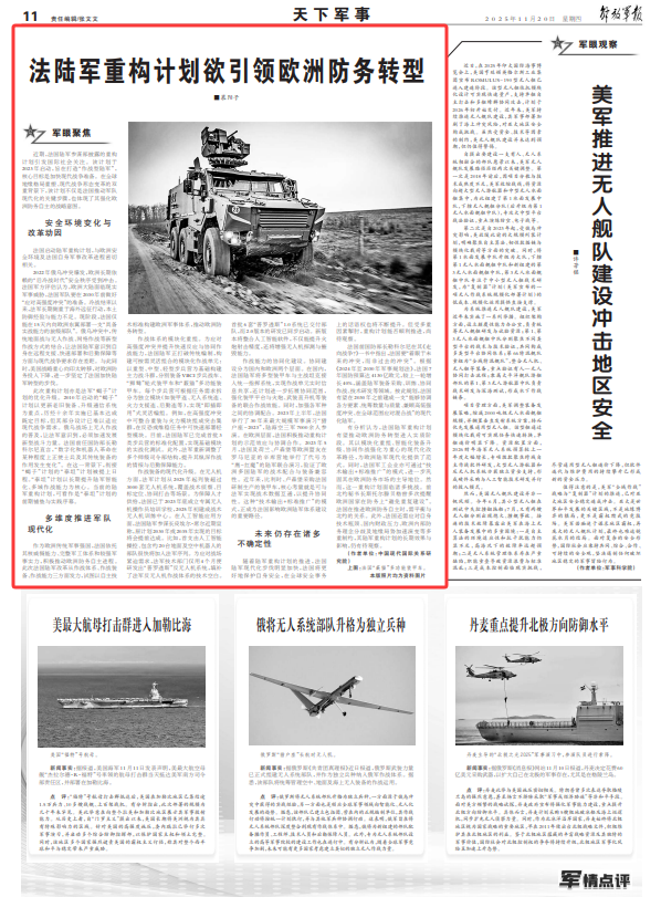 有分析認為,法國陸軍重構(gòu)計劃有望推動歐洲防務(wù)轉(zhuǎn)型進入實質(zhì)階段。其以模塊化重組、智能化裝備升級、協(xié)同作戰(zhàn)強化為重心的現(xiàn)代化改革路徑,為歐洲陸軍現(xiàn)代化提供了范式。同時,法國軍工企業(yè)亦可通過“技術(shù)輸出+標準推廣”的模式,進一步鞏固其在歐洲防務(wù)市場的主導(dǎo)地位。然而,這一重構(gòu)計劃面臨諸多挑戰(zhàn)。前北約秘書長斯托爾滕貝格曾多次提醒歐洲國家在防務(wù)上“避免重復(fù)建設(shè)”。法國在推進歐洲防務(wù)自主時,需平衡與北約的關(guān)系。此外,法國還需應(yīng)對自身技術(shù)瓶頸、國內(nèi)財政壓力、歐洲內(nèi)部防務(wù)理念分歧及地緣局勢加速演變等多重制約,其陸軍重構(gòu)計劃的長期效果與影響,仍有待觀察。