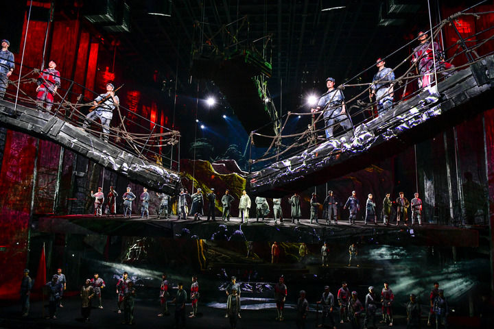 演員在貴州省遵義市偉大轉(zhuǎn)折劇場表演《偉大轉(zhuǎn)折》(2025年1月8日攝)。新華社記者 楊文斌 攝
