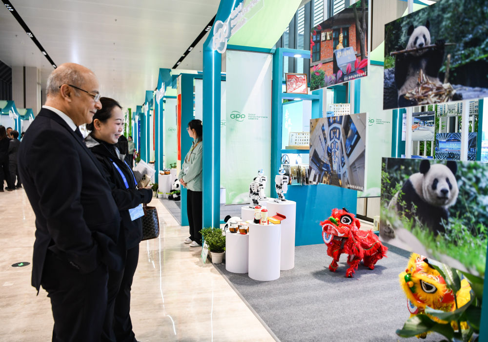 2024年11月26日,參會(huì)嘉賓在2024全球熊貓伙伴大會(huì)間隙觀(guān)看舞獅機(jī)器人表演。