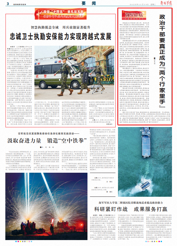 強化“兩個行家里手”意識,提高領兵打仗、決戰(zhàn)決勝的本領。習主席指出,政治干部要努力學軍事、學指揮、學科技,全面提高綜合素質(zhì)和實際能力,政治工作要成為行家里手,軍事工作也要成為行家里手,這樣才能把政治工作做好。政治干部不能做訓練的“旁觀者”、打仗的“門外漢”,而應下功夫把練兵打仗、指揮打仗、帶兵打仗的本領搞過硬,具備“坐下來能寫、站起來能講、上戰(zhàn)場能打”的素質(zhì),真正成為政治工作和軍事工作“兩個行家里手”。