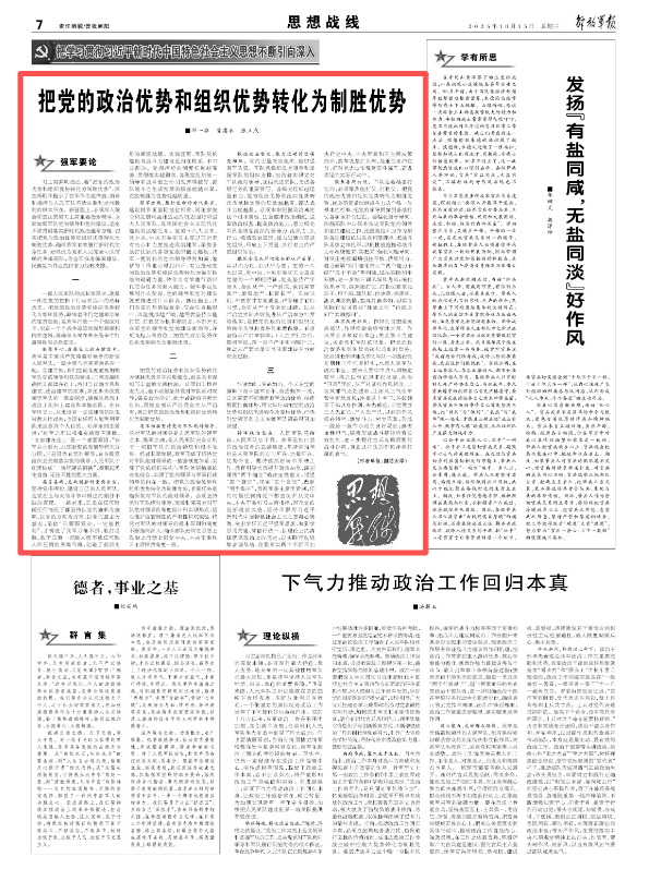 把黨的政治優(yōu)勢(shì)和組織優(yōu)勢(shì)轉(zhuǎn)化為制勝優(yōu)勢(shì)