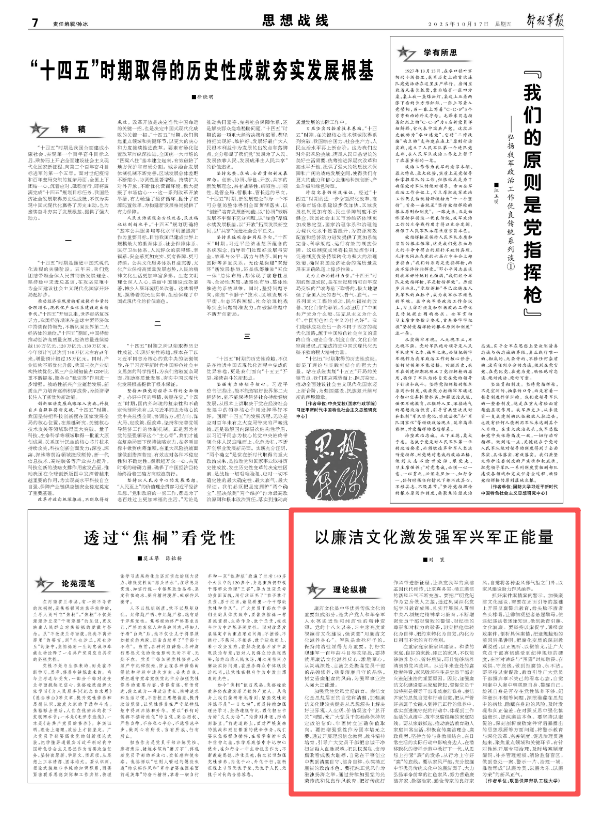 以廉潔文化激發(fā)強(qiáng)軍興軍正能量