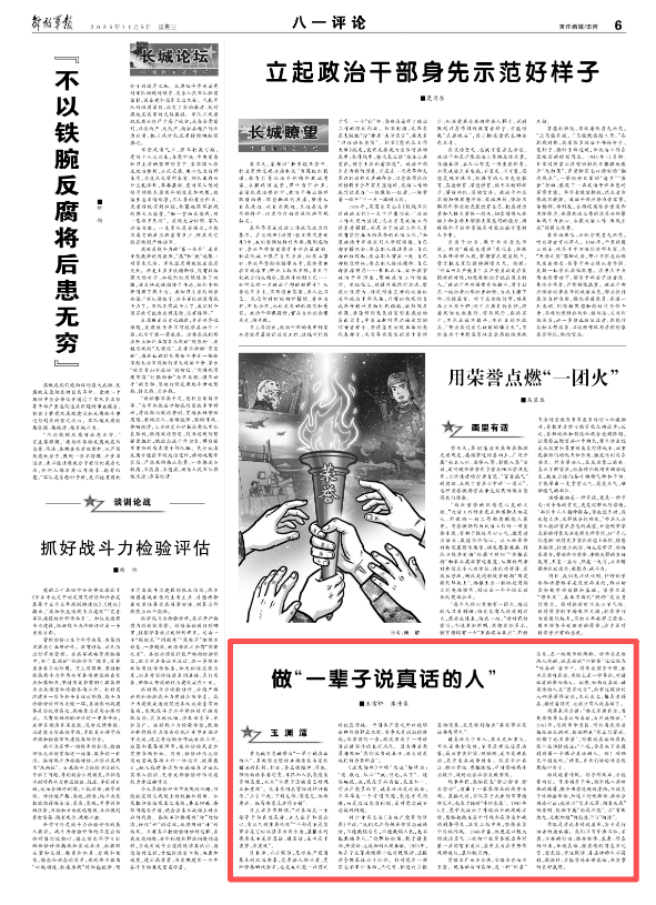 講真話之于軍人,意義更加重大。軍隊(duì)是要打仗的,不管是建議還是決策,最注重實(shí)打?qū)?、硬碰硬,是不是講真話,關(guān)乎未來戰(zhàn)爭勝負(fù)。倘若不講真話、摻水作假、虛報瞞報,平時影響戰(zhàn)斗力提升,戰(zhàn)時就會品嘗失敗苦果。
