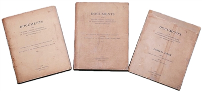 ▲重慶圖書館藏的《聯(lián)合國憲章起草文件》共3冊,包含1冊索引和2冊起草文件?!?span tag="ueditor-text-tushuo" class="imgdesc" style="text-indent: 2em; ">重慶圖書館供圖