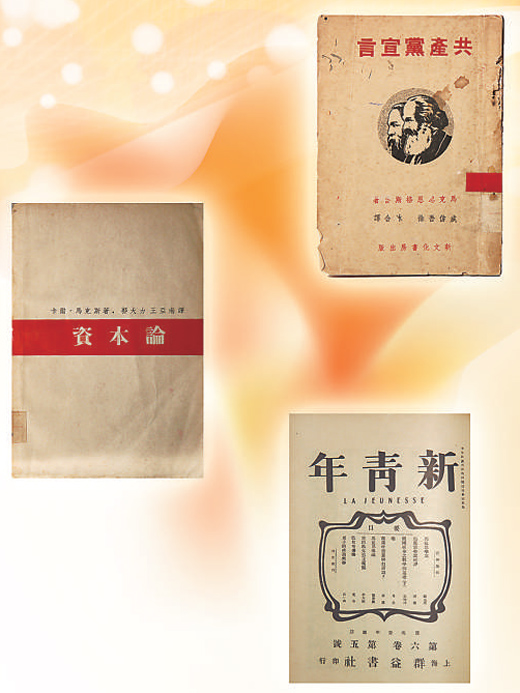 ▲圖片自上至下分別為《共產(chǎn)黨宣言》《資本論》的早期譯本以及刊登李大釗《我的馬克思主義觀》一文的《新青年》雜志?!?span tag="ueditor-text-tushuo" class="imgdesc" style="text-indent: 2em; ">資料圖片