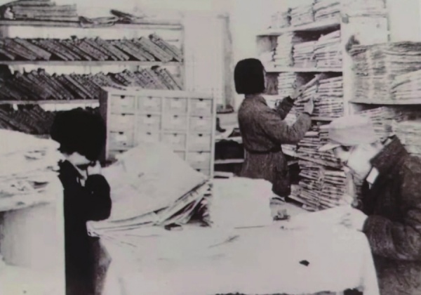 “抗大”圖書館的所有圖書、期刊均編有卡片目錄,由專門的目錄柜收納,圖書扉頁蓋有“抗大圖書館”的館藏章。圖書館的報刊庫和閱覽室設(shè)置在一起,窯洞中間放有閱覽桌、條凳和小方凳,供教員和學員到館內(nèi)閱讀資料,但館內(nèi)空間有限,大部分學員閱讀的報紙仍由各大隊和支隊統(tǒng)一分發(fā)。圖書館的工作人員既負責圖書借閱管理工作,又進行資料的收集編輯工作,特別是制作專題資料集。工作人員將報紙和內(nèi)部材料中的專題資料剪切下來,按國際問題、時事問題、文化知識等分類整理成冊,供大家學習參考,很受歡迎。