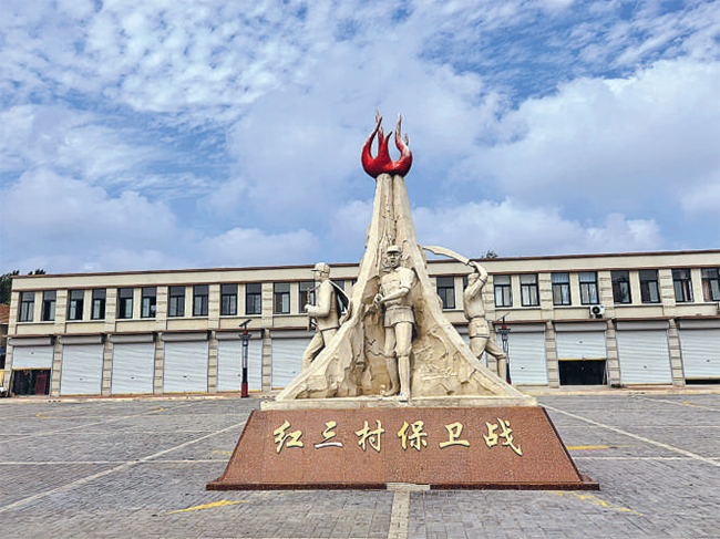▲紅三村保衛(wèi)戰(zhàn)雕塑?!∽髡吖﹫D