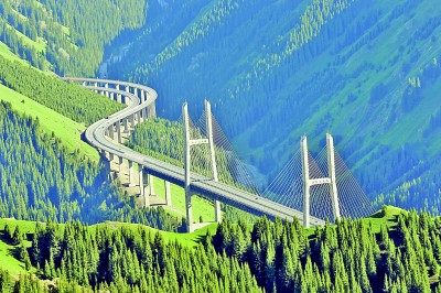 2011年9月30日,果子溝大橋正式通車運營。這是國內(nèi)首座雙塔雙索面鋼桁梁斜拉橋,被譽為“新疆第一橋”。