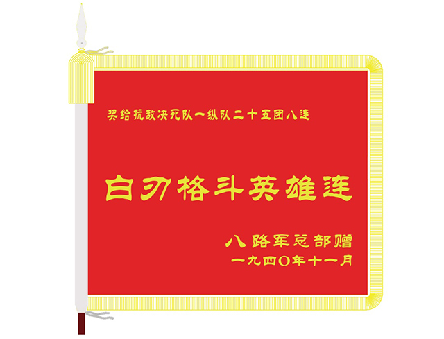 這場戰(zhàn)斗歷時一個多小時,殘酷的白刃戰(zhàn)就占半個多小時,8連共擊斃日寇小隊長以下40余名,繳獲輕機槍2挺、步槍48支、手槍1支。戰(zhàn)后,張萬清、牛顯躍、李金標、張臘生等同志榮獲戰(zhàn)斗英雄光榮稱號。八路軍總部授予8連“白刃格斗英雄連”榮譽稱號,由此,“白刃格斗英雄連”就成為這個連隊的光榮稱號,此面榮譽錦旗至今保存在中國人民革命軍事博物館。在慶祝中國人民解放軍建軍90周年大會上,習(xí)主席強調(diào):“‘狼牙山五壯士’、‘白刃格斗英雄連’、‘劉老莊連’、董存瑞、邱少云、黃繼光等無數(shù)英雄群體和革命先烈,用生命詮釋了一往無前的英雄氣概?!?/p>