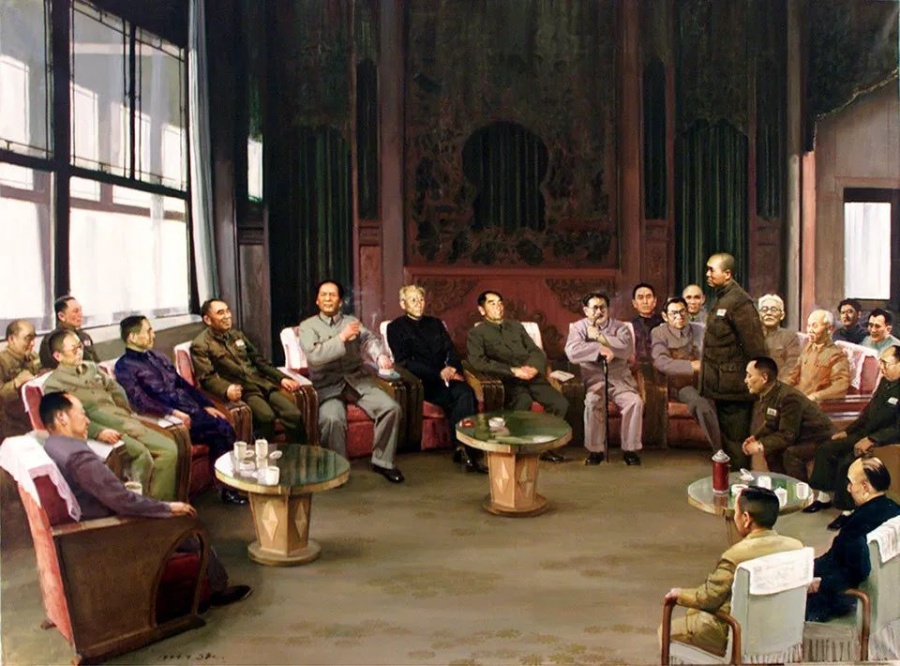 9月15日,侵朝美軍在朝鮮西海岸的仁川實施登陸。自此,美軍和南朝鮮軍轉(zhuǎn)入全面反攻,朝鮮戰(zhàn)局發(fā)生逆轉(zhuǎn)。10月1日,金日成給毛澤東致信,向中國政府提出出兵支援的請求。同日,斯大林在給毛澤東的電報中也建議中國至少派出五六個師,掩護朝鮮人民軍在三八線以北組織后備力量。在接到朝鮮方面的請求后,10月2日下午,毛澤東主持召開中共中央書記處會議,討論朝鮮戰(zhàn)局和中國出兵援朝問題。會上多數(shù)人不贊成出兵,遂決定4日召開擴大的中共中央政治局會議繼續(xù)討論。毛澤東要周恩來派飛機到西安,接彭德懷到北京參加會議。當天,毛澤東給斯大林回電表示暫不出兵。