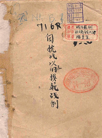 ▲八路軍第120師358旅716團(tuán)編印的《自抗戰(zhàn)以來的模范戰(zhàn)例》封面。