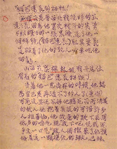▲檔案中記錄《“鍋巴”連長(zhǎng)的犧牲》一文的頁(yè)面。