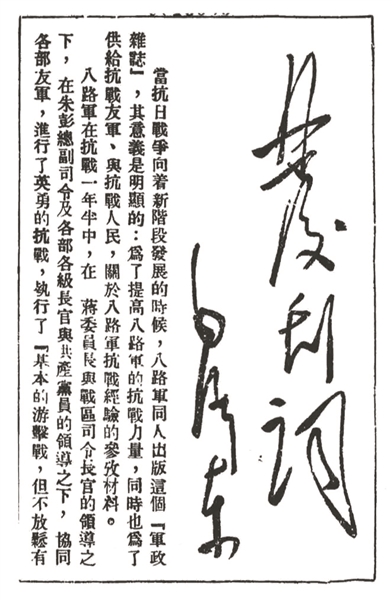 ▲《八路軍軍政雜志》發(fā)刊詞?!≠Y料照片