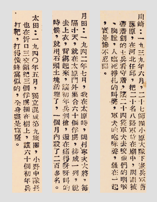 ▲日軍士兵太田、月田、川崎的發(fā)言記錄。