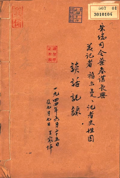 解放軍檔案館保存著一份關(guān)于中外記者西北參觀團(tuán)的珍貴檔案,標(biāo)題是《史坦因、福爾曼、武道及中國(guó)記者等提出的問題》,詳細(xì)記錄了記者們對(duì)中國(guó)共產(chǎn)黨提出的7個(gè)問題:“共黨對(duì)盟軍及盟軍對(duì)共黨之幫助”“共黨軍隊(duì)的組織、力量及其他”“關(guān)于共黨作戰(zhàn)的根據(jù)地問題”“關(guān)于國(guó)民黨軍隊(duì)問題”“關(guān)于日軍問題”“關(guān)于偽軍問題”“一般問題”。
