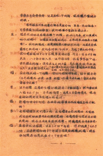 ▲朱德、葉劍英同志與外國(guó)記者談話記錄。