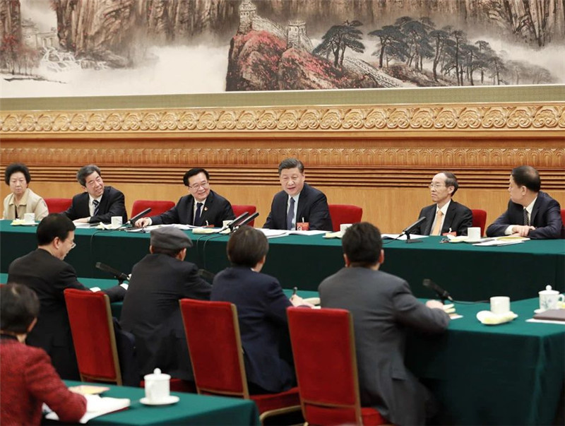△2019年3月8日,習(xí)近平參加十三屆全國(guó)人大二次會(huì)議河南代表團(tuán)的審議。