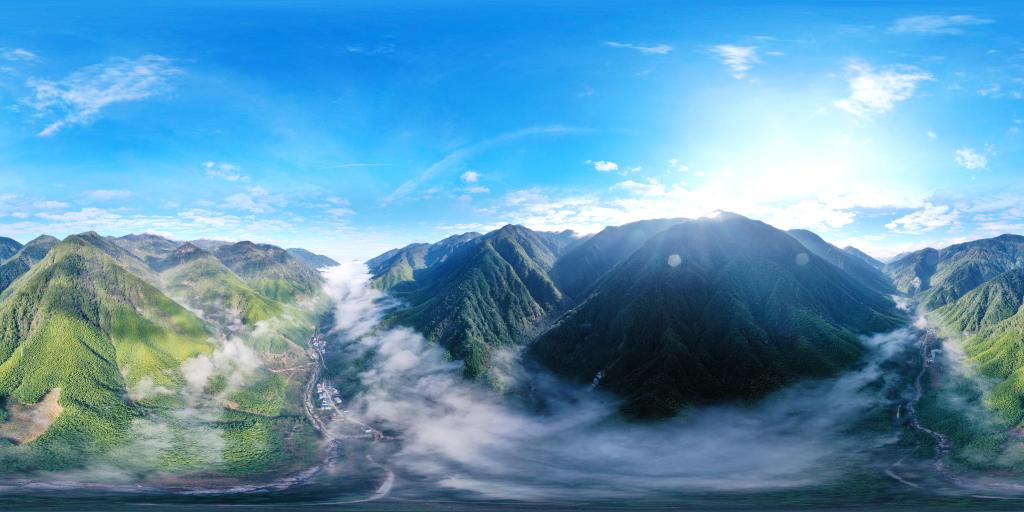2020年12月1日,武夷斷裂帶峽谷內云霧繚繞,村莊若隱若現(無人機拼接照片)。新華社記者姜克紅攝
