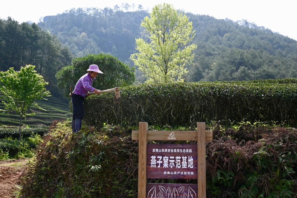 2021年3月23日,茶農在武夷山星村鎮(zhèn)燕子窠生態(tài)茶園除草。新華社記者姜克紅攝