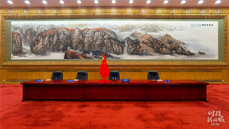△北京人民大會堂,視頻峰會開始前的現(xiàn)場。(總臺央視記者凌楓拍攝)