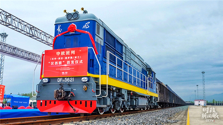 △2021年3月31日,首列43車滿載1100余噸食品、精密儀器、日用百貨等出口商品的集裝箱,搭乘中歐班列“漢西歐”列車從漢中出發(fā),最終抵達鹿特丹及莫斯科。(圖/視覺中國)
