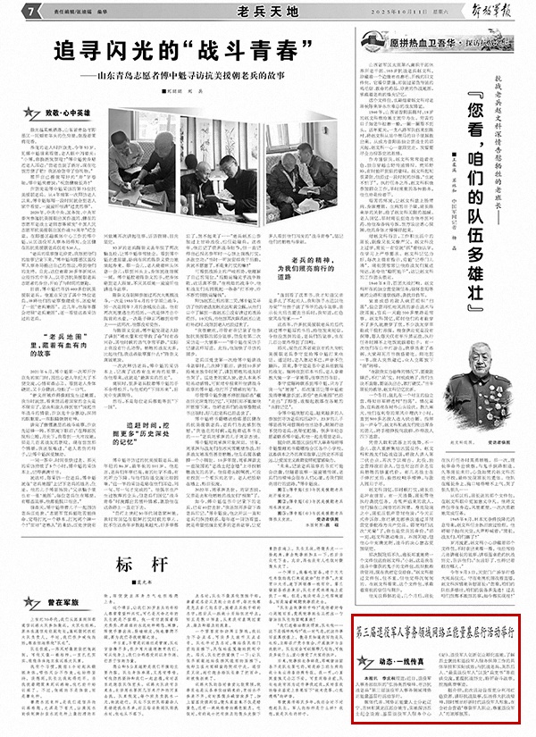 解放軍報訊 李慶桐報道:近日,退役軍人事務(wù)部組織的“弘揚英烈精神、尋訪抗戰(zhàn)老兵”第三屆退役軍人事務(wù)領(lǐng)域網(wǎng)絡(luò)正能量基層行活動舉行。