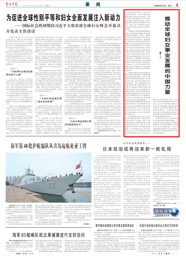 全球婦女峰會(huì)將于10月13日至14日在北京舉行。習(xí)近平主席將出席峰會(huì)開(kāi)幕式并發(fā)表主旨講話。多年來(lái),中國(guó)不僅在促進(jìn)男女平等與婦女事業(yè)發(fā)展方面取得巨大成就,同時(shí)還秉持構(gòu)建人類(lèi)命運(yùn)共同體理念,順應(yīng)和平、發(fā)展、合作、共贏的時(shí)代潮流,在全球婦女事業(yè)發(fā)展歷程中貢獻(xiàn)中國(guó)力量。
