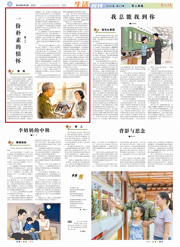 經(jīng)歷過生死考驗的母親,變得更加堅強。在我們幾個孩子的成長過程中,她把對黨的熱愛、對他人的關(guān)心及在生活中克服困難的勇氣,通過自己樸素的言行,潛移默化地傳給了我們。1965年春節(jié)前,我父親接到上級調(diào)他去新單位工作的命令。除夕那天,父母就帶著我們坐火車出發(fā)了。父親新單位是個部隊倉庫,有鐵道專用線。官兵要經(jīng)常將列車運來的物資從車上卸下入庫,或裝車再發(fā)往各地。時間久了,不少官兵的衣服都被磨破了。母親知道后,經(jīng)常把大家磨破的衣服拿回家縫補。有時破損的衣服多,母親就徹夜縫補。這樣解他人之困的事情,母親一生做了很多。從1950年到1980年的30年里,父親的崗位多次調(diào)動,我們一家也離開了大城市。我們對此不理解,母親卻說:“現(xiàn)在的條件比戰(zhàn)爭年代不知好了多少,你們要珍惜。你們是革命后代,要努力學習,向模范人物看齊,不要給家里抹黑?!痹谀赣H的影響下,我們步入社會后都在各自崗位上努力工作著。