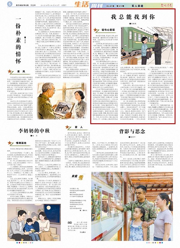 隨著年歲的增長(zhǎng),我們聊天的內(nèi)容也越來(lái)越簡(jiǎn)單,多半是孩子的學(xué)習(xí)、老人的身體等。生活日復(fù)一日,平平淡淡。他常常提醒我,作為一名軍人,也許他下一個(gè)崗位又會(huì)離家千里。幸運(yùn)的是,我們成為彼此溫暖的港灣。每一次分別都是圍著一個(gè)圓心在打轉(zhuǎn)、盯著一個(gè)燈盞在折返。