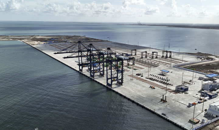 這是2023年12月1日在埃及亞歷山大拍攝的由中國(guó)港灣工程有限責(zé)任公司承建的阿布基爾集裝箱碼頭。新華社發(fā)(中國(guó)港灣工程有限責(zé)任公司供圖)