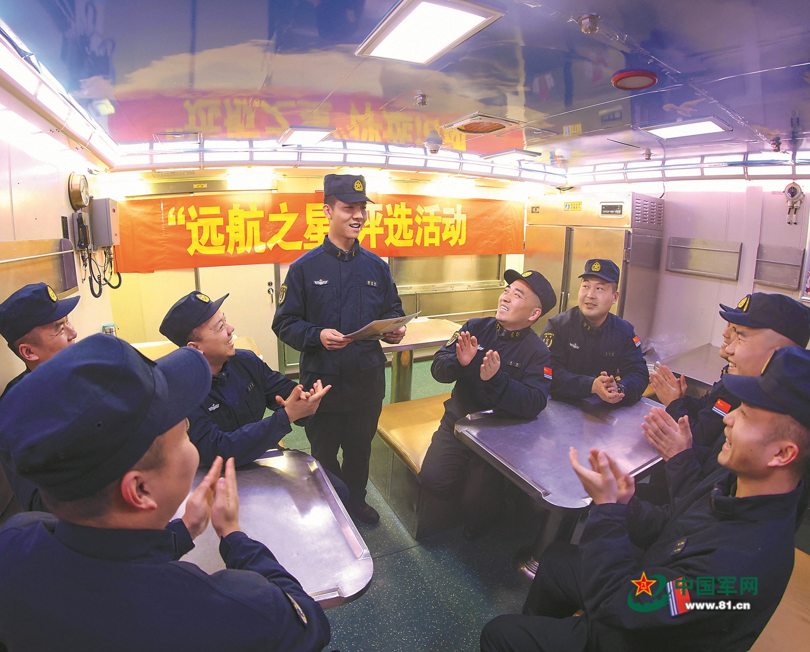 官兵在任務(wù)期間開展“遠(yuǎn)航之星”評選活動(資料圖片)。 劉再耀攝