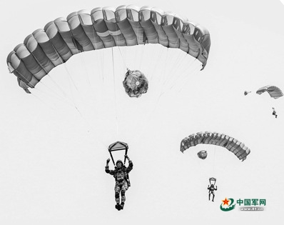 集訓(xùn)官兵進(jìn)行翼傘傘降訓(xùn)練。