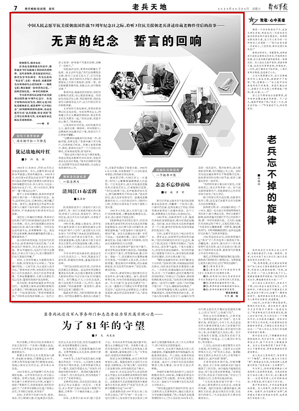 今天是中國人民志愿軍抗美援朝出國作戰(zhàn)75周年紀念日。在這個特殊的時間節(jié)點,我們走近3位抗美援朝老兵,循著那些“無聲的紀念”,回到硝煙彌漫的戰(zhàn)場,品讀志愿軍官兵“抗美援朝,保家衛(wèi)國”誓言背后的英勇無畏,更好地傳承弘揚抗美援朝精神。