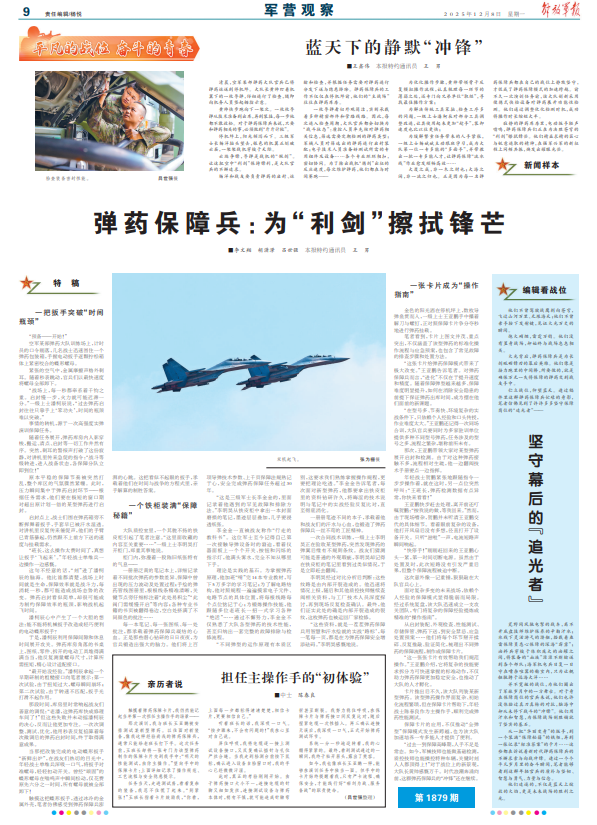 佇立戰(zhàn)位,仰望藍(lán)天。透過稿件里這群彈藥保障兵忙碌的身影,筆者仿佛見到了許許多多堅(jiān)守保障崗位的“追光者”——