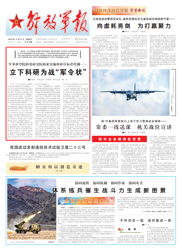 多項(xiàng)“十四五”規(guī)劃項(xiàng)目圓滿收官,超八成年度科研項(xiàng)目結(jié)題驗(yàn)收……12月中旬,軍事科學(xué)院防化研究院召開年終總結(jié)部署會(huì),對年初籌劃的科研目標(biāo)逐一檢查考評、掛賬銷賬,并擬訂新年度科研目標(biāo)責(zé)任書,明確重點(diǎn)科研方向與核心指標(biāo)。這種貫穿全程、環(huán)環(huán)相扣的科研模式,是該院連續(xù)3年實(shí)施科研目標(biāo)責(zé)任制,聚焦核心技術(shù)、錨定向戰(zhàn)攻堅(jiān)的實(shí)踐探索。