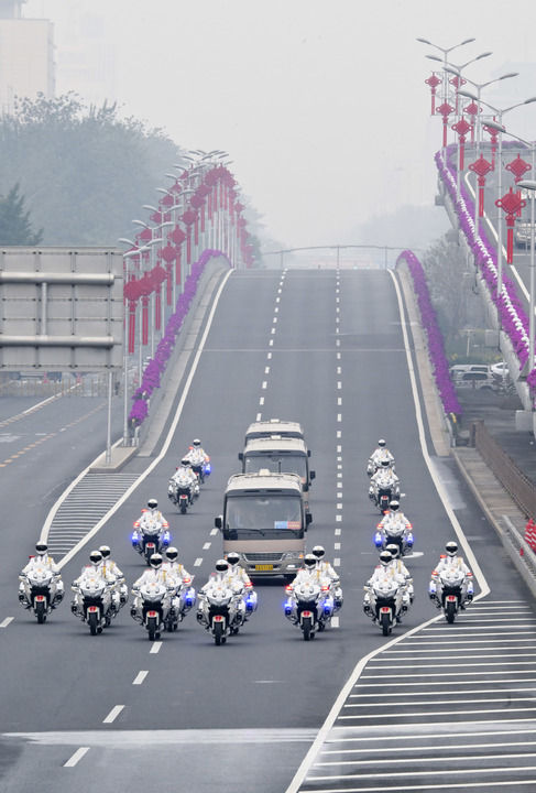 載著英雄的禮賓車隊從住地出發(fā),在禮賓摩托車隊護衛(wèi)下,駛上復興路,駛?cè)腴L安街,駛向人民大會堂。