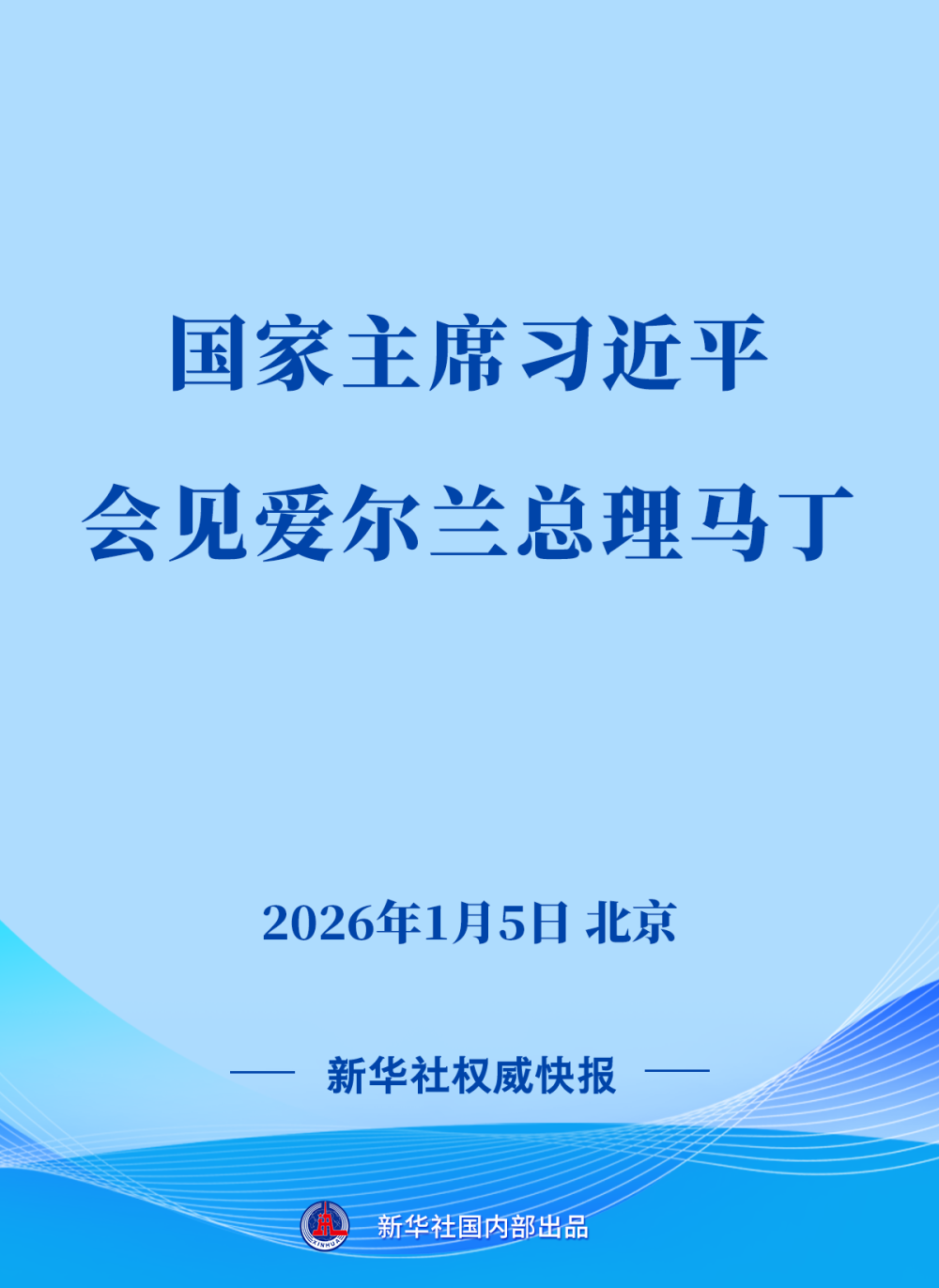 1月5日上午,國家主席習(xí)近平在北京會(huì)見來華進(jìn)行正式訪問的愛爾蘭總理馬丁。