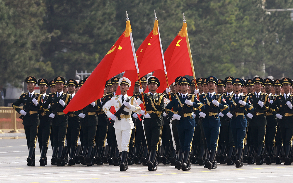 2025年9月3日,紀念中國人民抗日戰(zhàn)爭暨世界反法西斯戰(zhàn)爭勝利80周年大會在北京隆重舉行。這是儀仗方隊接受檢閱。新華社記者 王曄 攝