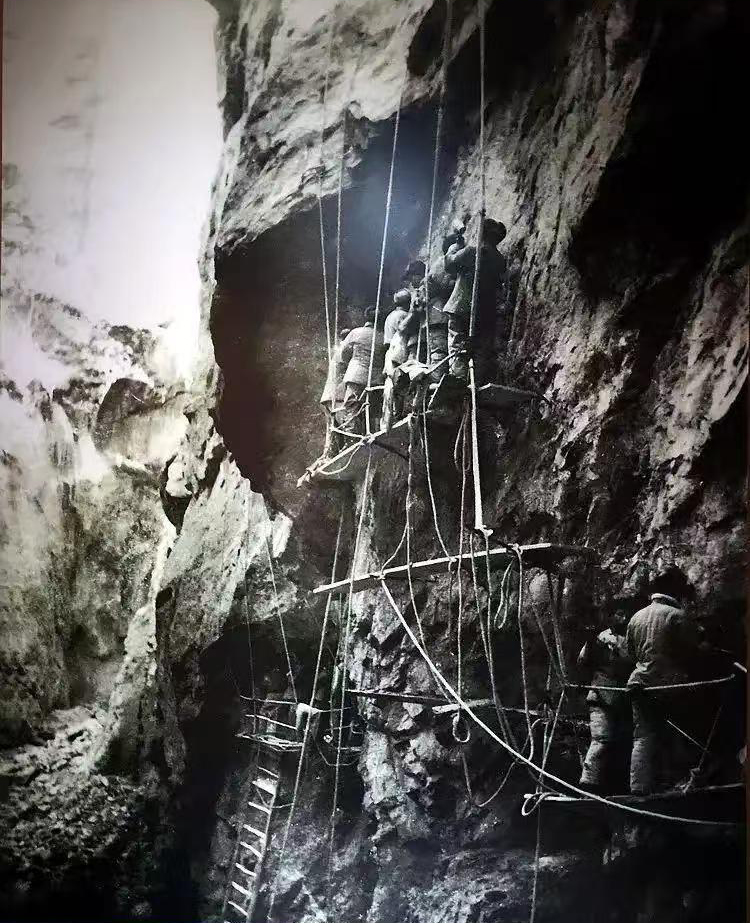 原第18軍官兵邊開進邊筑路,在峰巒險峻的雀兒山開鑿石方。(資料圖)