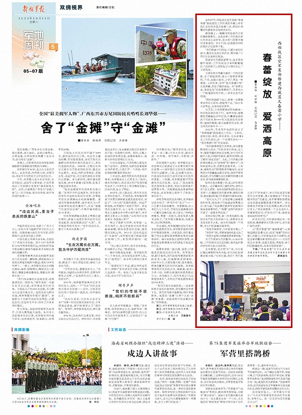 拉郊鄉(xiāng)藍天春蕾小學(xué),是工作隊幫扶的重點。這所藏在深山里的學(xué)校,曾經(jīng)只有幾間土坯房。如今在政府和部隊的關(guān)心支持下,已建起明亮的教學(xué)樓、寬敞的操場,教室里還配備了許多現(xiàn)代化教學(xué)設(shè)施。