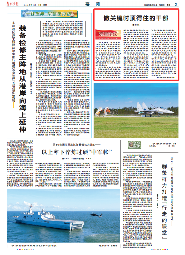 大事難事看擔(dān)當(dāng)。習(xí)主席強(qiáng)調(diào):“中華民族正處在偉大復(fù)興的關(guān)鍵時(shí)期,我們的改革發(fā)展正處在克難攻堅(jiān)、闖關(guān)奪隘的重要階段,迫切需要銳意進(jìn)取、奮發(fā)有為、關(guān)鍵時(shí)頂?shù)米〉母刹??!备墒聯(lián)拢歉刹康穆氊?zé)所在,也是價(jià)值所在。關(guān)鍵時(shí)能否頂?shù)米。菍?duì)一名黨員干部黨性、作風(fēng)、政治品格、擔(dān)當(dāng)精神、業(yè)務(wù)能力、群眾威信的綜合檢驗(yàn)。當(dāng)前,強(qiáng)軍事業(yè)又處在一個(gè)關(guān)鍵當(dāng)口,實(shí)現(xiàn)建軍一百年奮斗目標(biāo)到了最吃勁的時(shí)候。我們要有效應(yīng)對(duì)來自外部的遏制打壓,完成好艱巨繁重的戰(zhàn)建備任務(wù),如果沒有一大批平常時(shí)候看得出來、關(guān)鍵時(shí)刻站得出來、生死關(guān)頭豁得出來的黨員干部,就不可能有效化解危機(jī)、戰(zhàn)勝困難挑戰(zhàn),就不可能在強(qiáng)國強(qiáng)軍的新征程上創(chuàng)造新的更大奇跡。