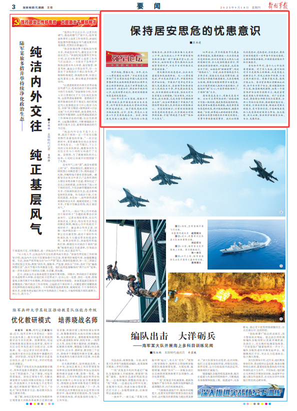 身處和平年代,每個(gè)人心中依然要有狼煙。對(duì)于軍人來(lái)說(shuō),最可怕的對(duì)手不是戰(zhàn)場(chǎng)上的強(qiáng)敵,而是思想上的醉享太平、作風(fēng)上的和平積弊、行為上的不謀打仗。有備才能無(wú)患,能戰(zhàn)方能止戈。每名官兵都應(yīng)清醒地認(rèn)識(shí)到,和平并不等于安全,因?yàn)榇嗳醯暮推街?,極易被颶風(fēng)摧垮,如果一個(gè)國(guó)家維護(hù)安全的手段跟不上,越是富有越是有被人宰割的風(fēng)險(xiǎn)。對(duì)廣大官兵來(lái)說(shuō),要堅(jiān)持全部精力向打仗聚焦,全部工作向打仗用勁,做好隨時(shí)能打仗、打硬仗、打勝仗的準(zhǔn)備,鍛造出更強(qiáng)大的能力、更可靠的手段,才能確保在黨和人民需要的時(shí)候召之即來(lái)、來(lái)之能戰(zhàn)、戰(zhàn)之必勝,堅(jiān)決維護(hù)好國(guó)家主權(quán)、安全、發(fā)展利益。