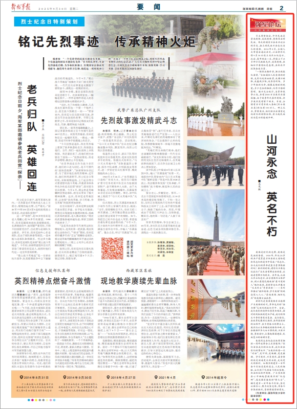 朱德同志在紀(jì)念左權(quán)將軍犧牲一周年追悼會(huì)上莊重題詞:“你們活在我們的記憶里,我們活在你們的事業(yè)中。”與英烈的每一次“對(duì)話”,是叩問(wèn),是喚醒,更是激勵(lì)。學(xué)習(xí)英烈、不負(fù)英烈,最重要的就是創(chuàng)造更大的業(yè)績(jī),走向更大的勝利。如期實(shí)現(xiàn)建軍一百年奮斗目標(biāo)是黨的意志、人民的期盼,如今到了吃勁奮斗的攻堅(jiān)期、加油加壓的沖刺期。廣大官兵要在心中砌起崇敬英烈的“紀(jì)念碑”,高筑強(qiáng)軍備戰(zhàn)的“烽火臺(tái)”,錨定建軍一百年奮斗目標(biāo),堅(jiān)定必勝信心,聚力攻堅(jiān)克難,用奮斗奪取新勝利,靠拼搏贏得新榮光。
