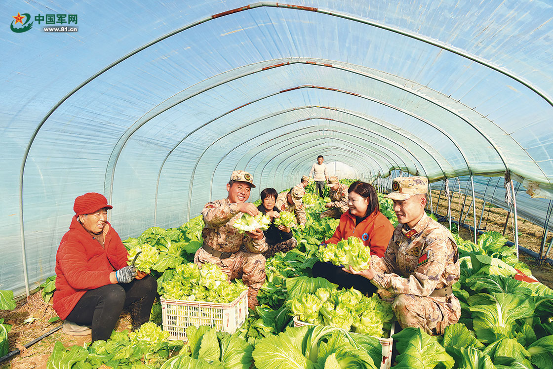 12月中旬,安徽省碭山縣人武部組織民兵分隊幫助村民采收蔬菜。李金春攝